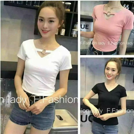 夏季针织T恤女短袖修身V领毛衣